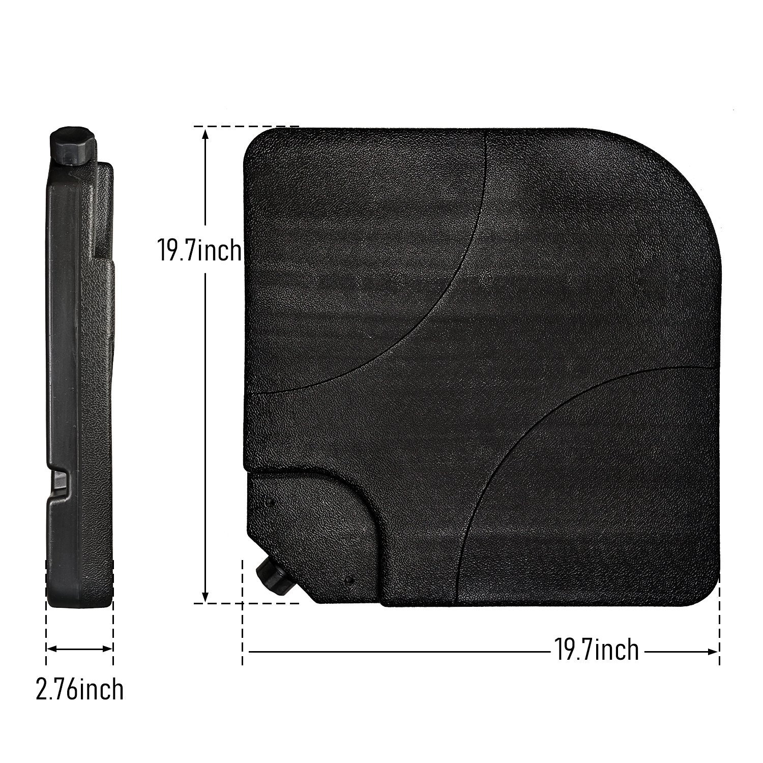 • Per plate dimension: 19.7 in. x 19.7 in. x 2.76 in., including a twist cap