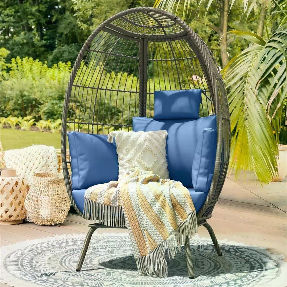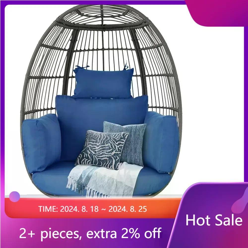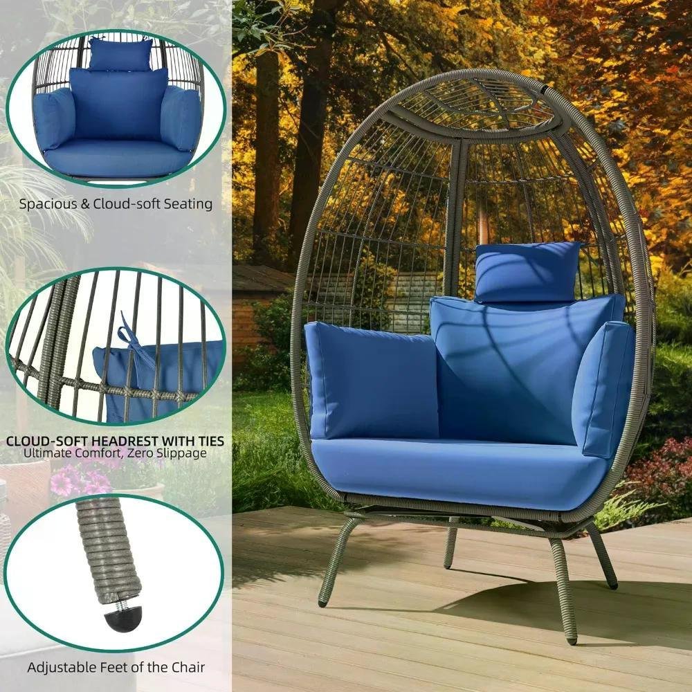 Home > Wicker Egg Chairs Outdoor Indoor, Oversized 370lbs Capacity Large Egg Chairs Stand Cushion Egg Basket Chair for Patio,Steelblue