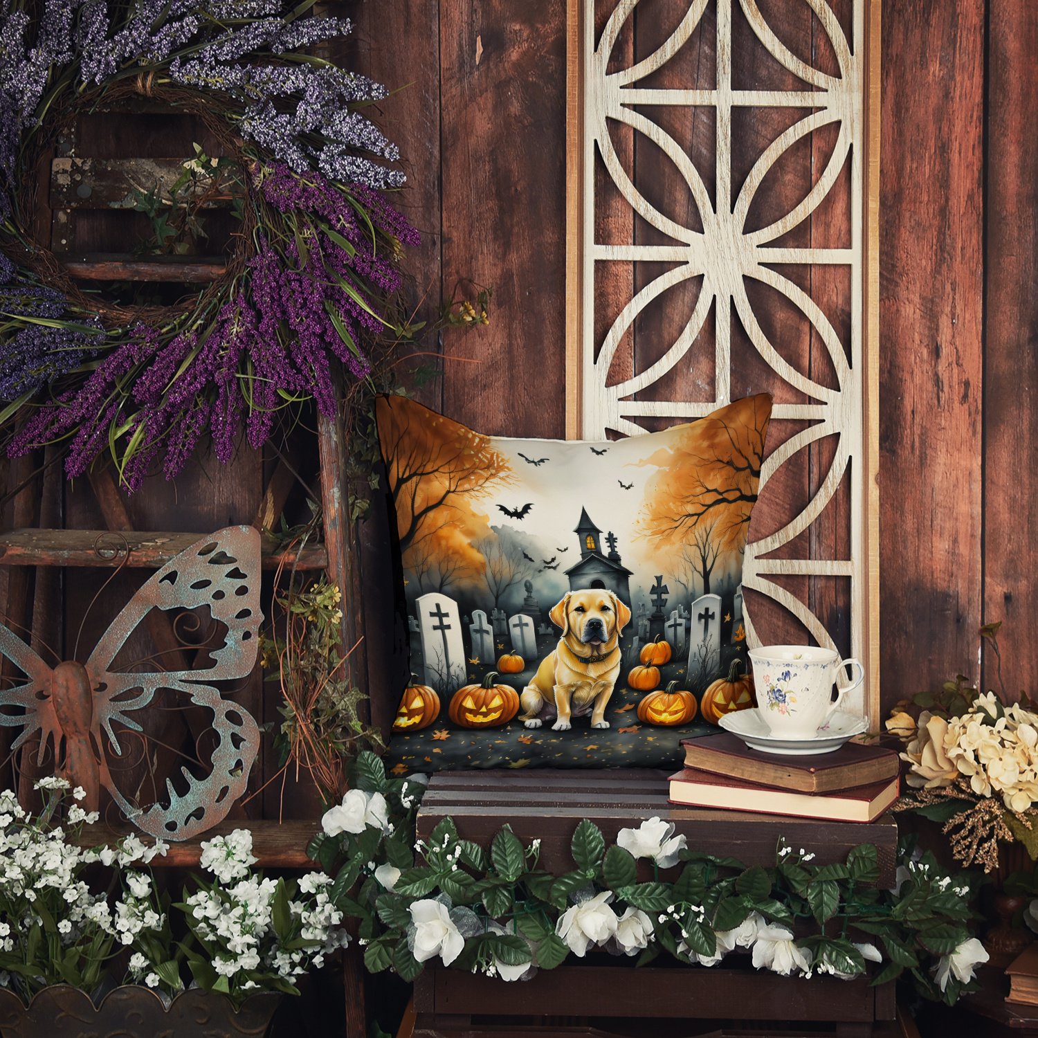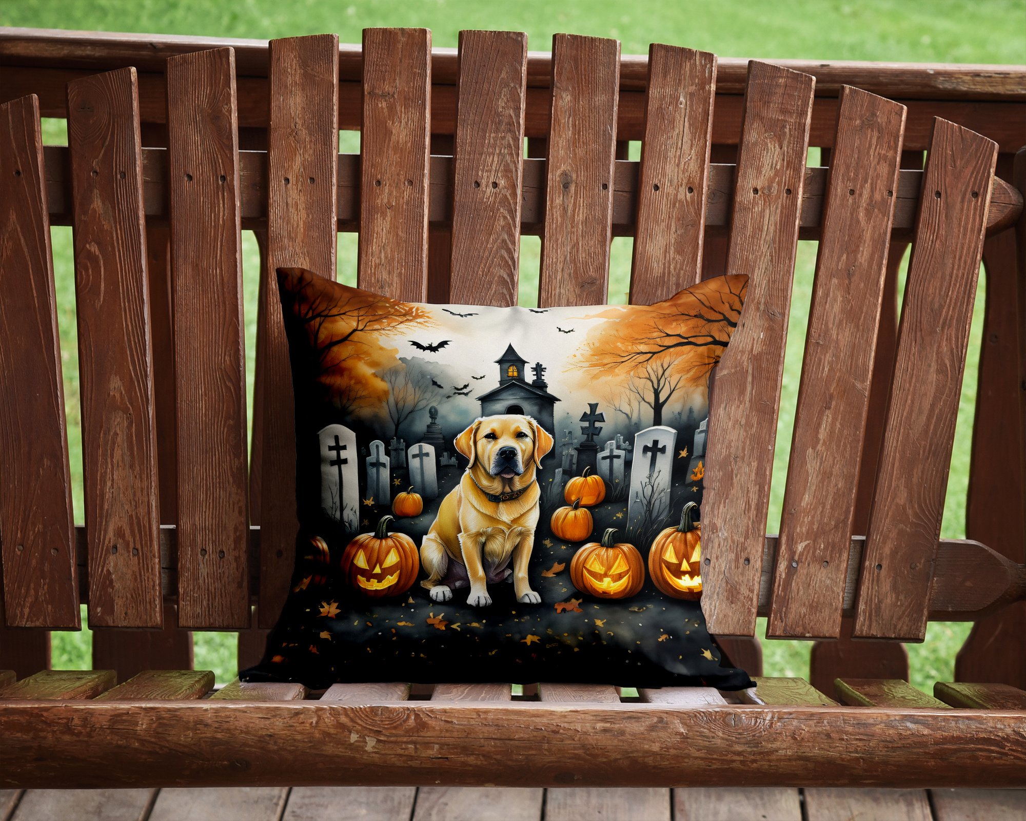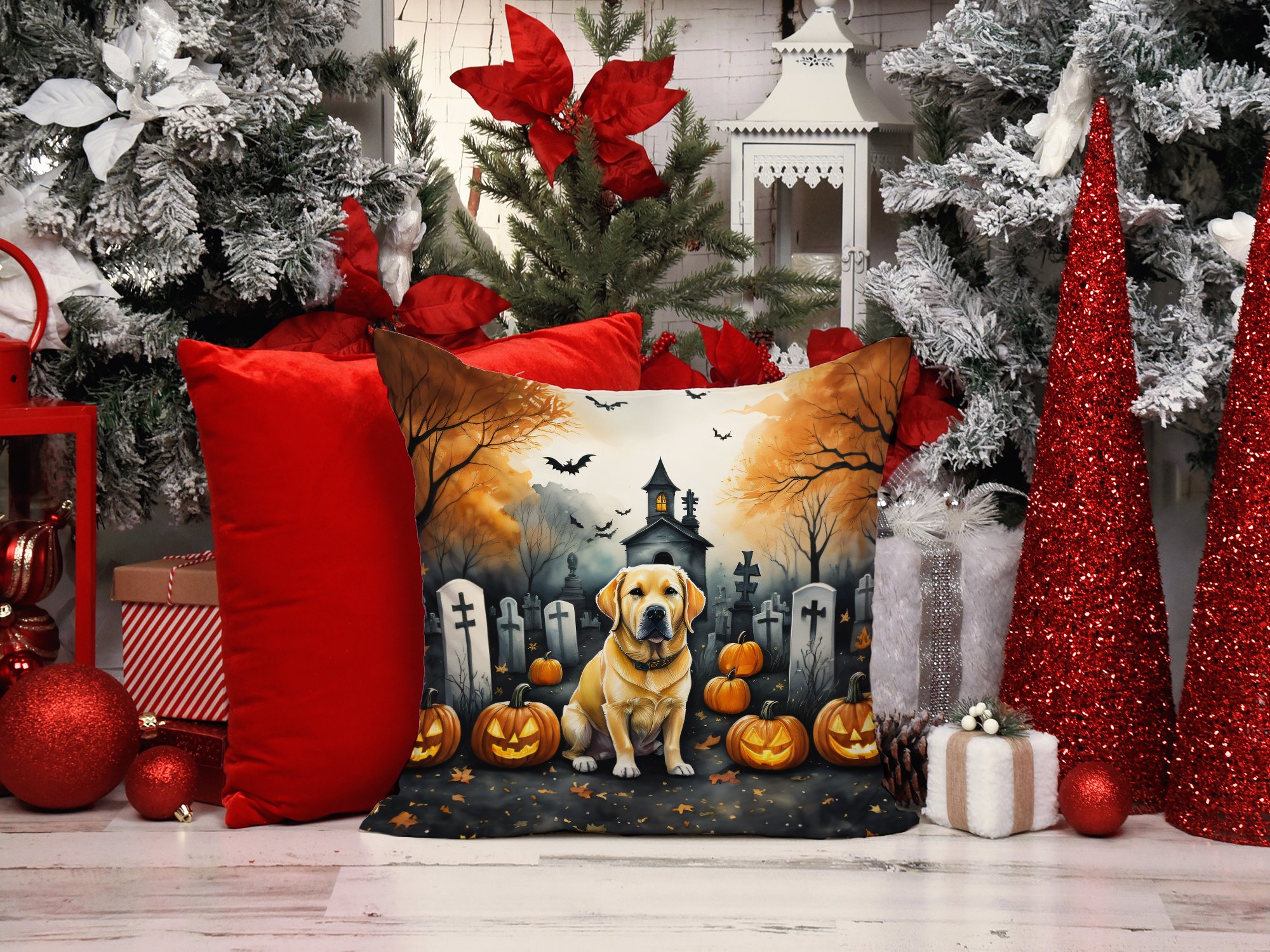 Yellow Labrador Retriever Spooky Halloween Throw Pillow Machine Washable, Indoor Outdoor Decorative Pillow for Couch, Bed or Patio, 14Hx14W